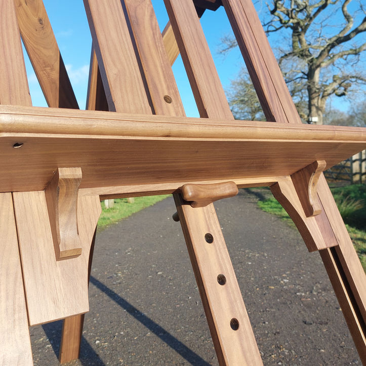 Traditional walnut easel. This easel was constructed using traditional techniques, with hand cut wedged mortice and tenon joints to make a strong stable piece. It needed to be well crafted as it was shipped to live in Florida and needs to withstand a big change in temperature and humidity.
